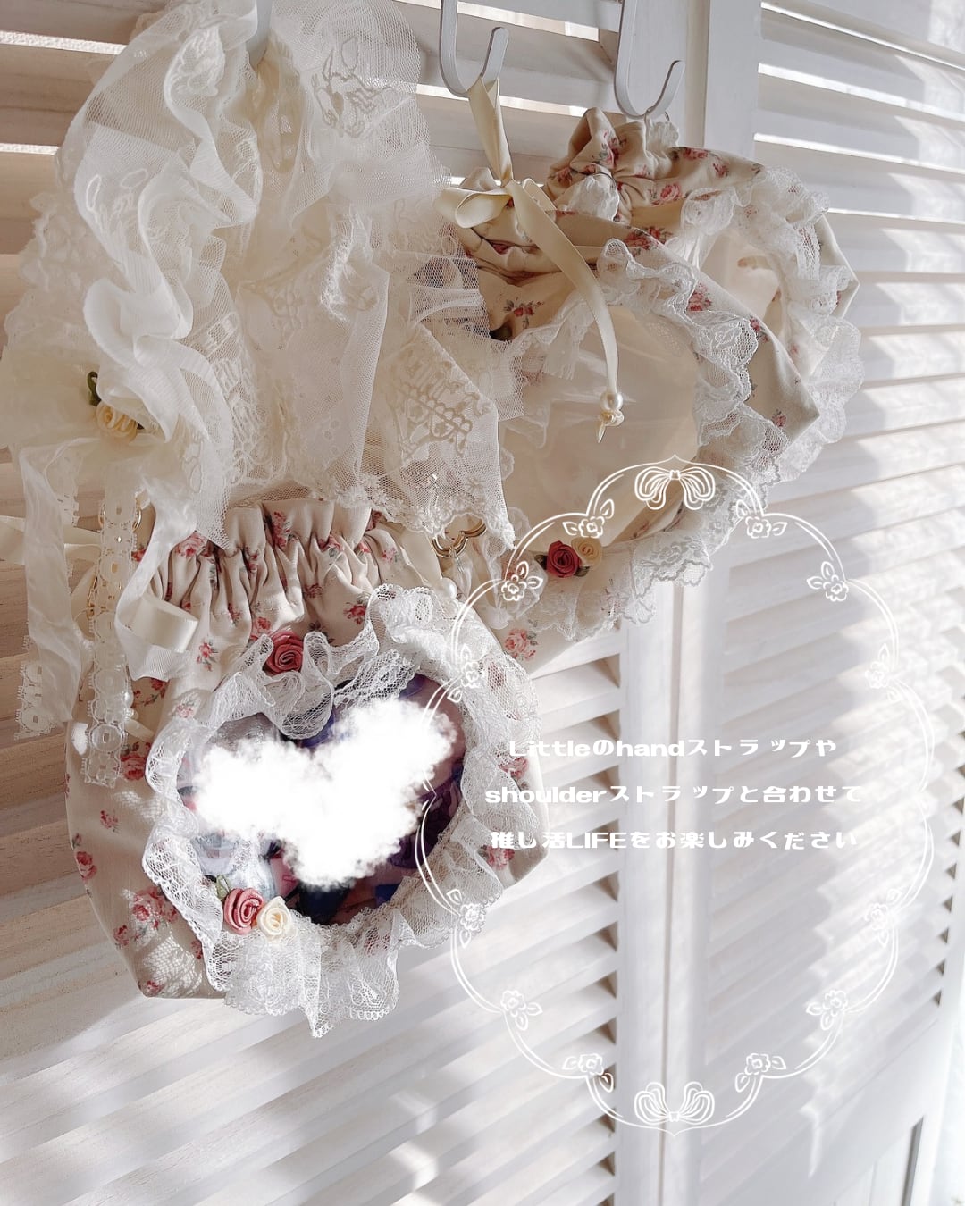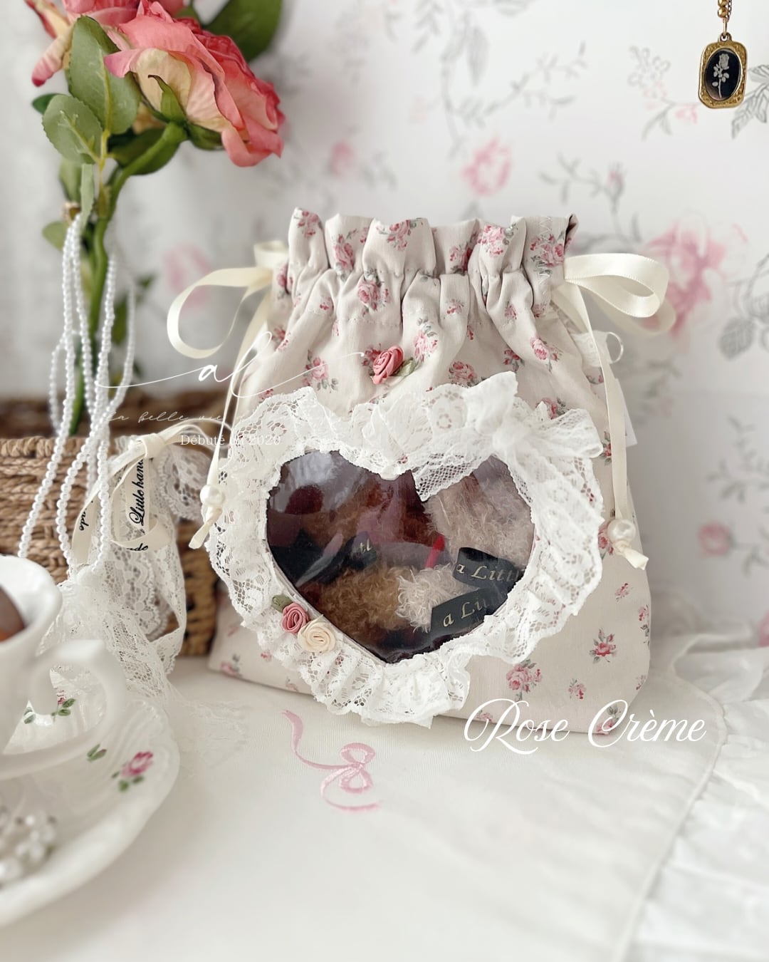 〔受注〕Regular︎┊︎推しとおでかけ巾着pochetteーRose Crèmeー ぬいポーチ 推しぬいポーチ