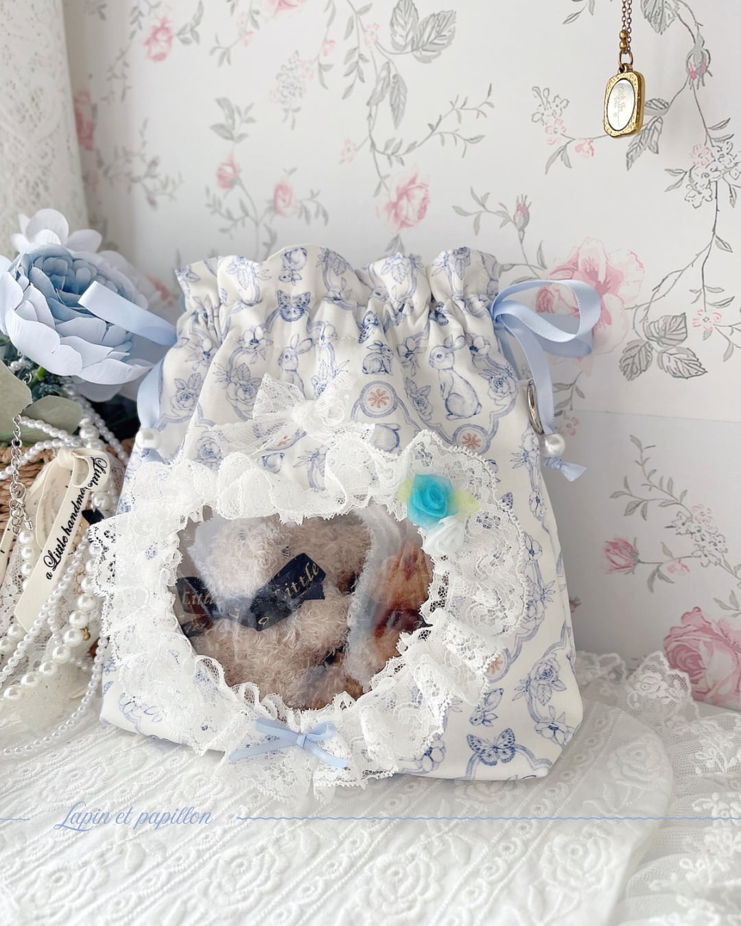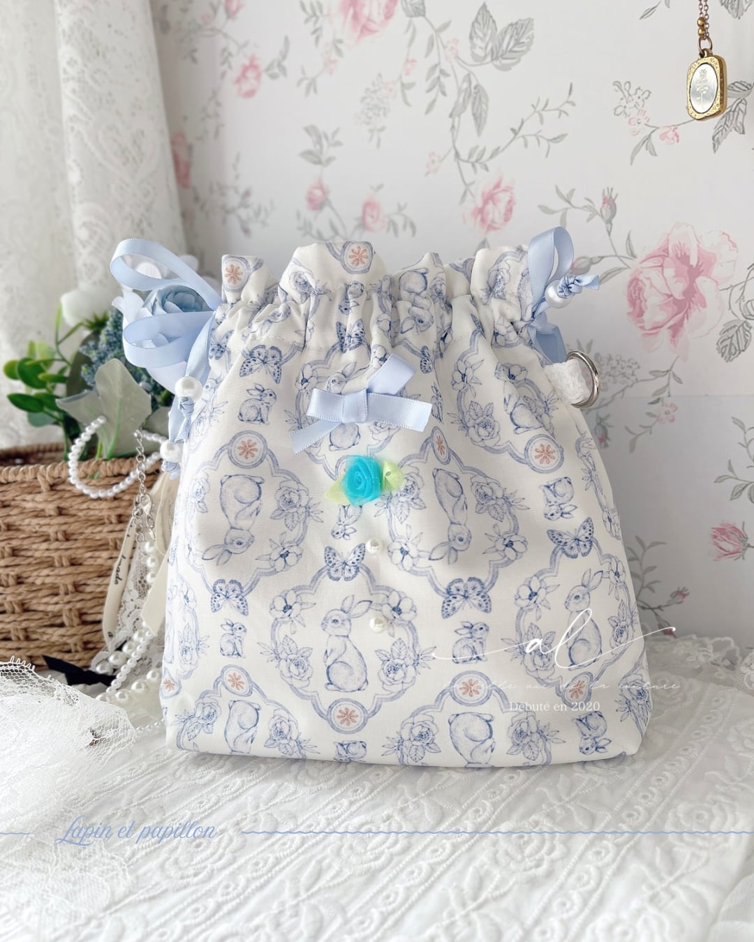 〔完成品〕Regular︎┊︎推しとおでかけ巾着pochette〜Lapin et papillon〜ぬいポーチ